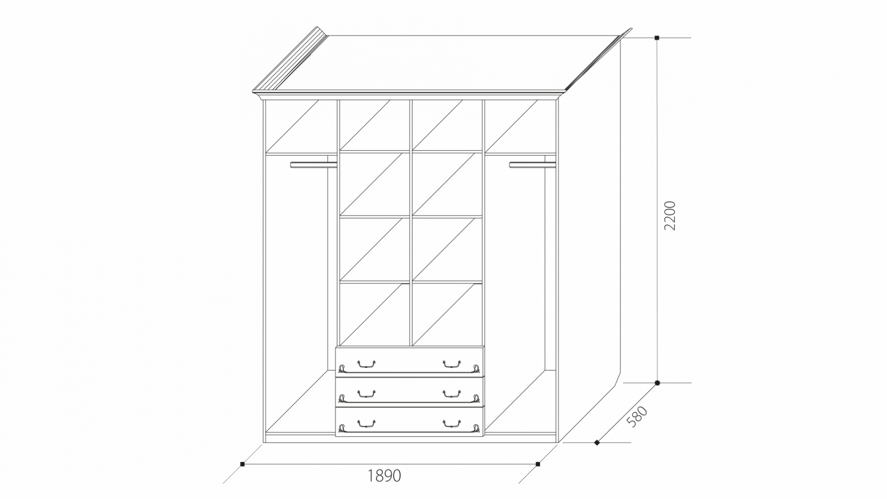 ШКАФ 4-Х дв. с выдвижными ящиками без зеркал Ивушка-5